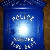 This is representative of Oakland's first Police call boxes. These boxes were originally installed in 1880's and remained in service until replaced by the smaller Oakland manufactured boxes